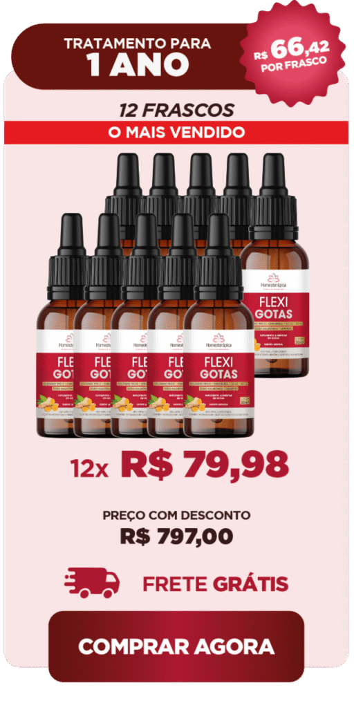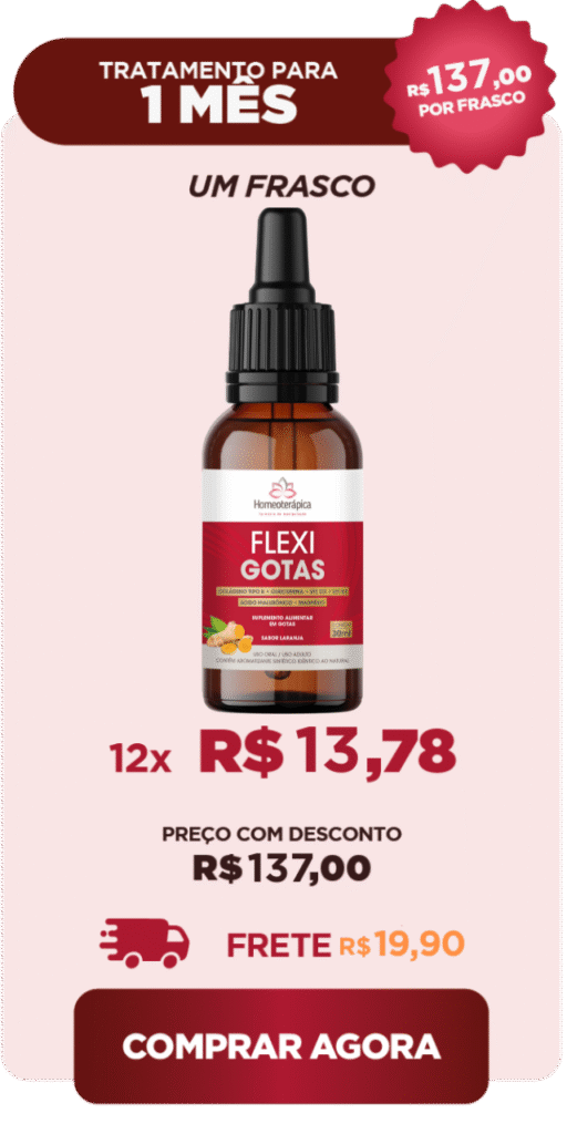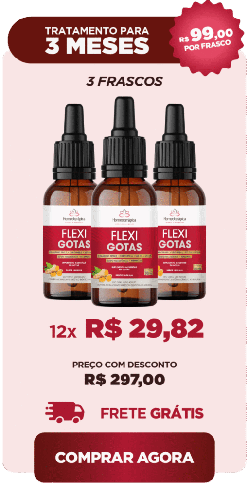 Elaborado sob os preceitos da Homeoterápica Farmácia de Manipulação, FlexiGotas tem ação sinérgica, a qual implica em cada um dos seus componentes potencializar a ação dos outros, agindo diretamente na causa das dores articulares, estimulando a regeneração do tecido cartilaginoso, lubrificando e protegendo as articulações, reduzindo a inflamação e a dor.